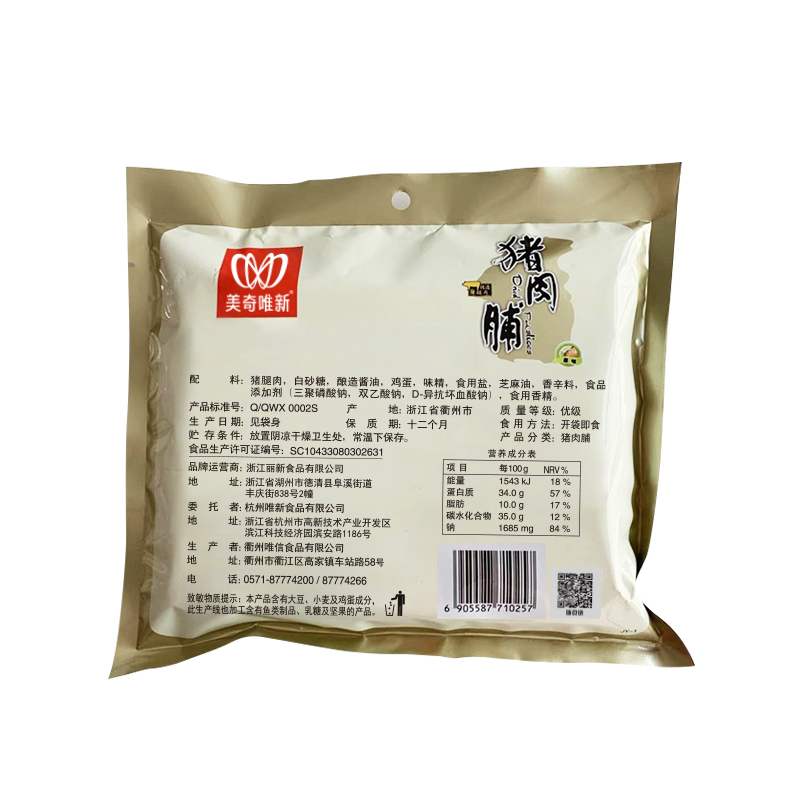 美奇唯新 猪肉脯 原切美味 零食 87g*2袋 干条零食