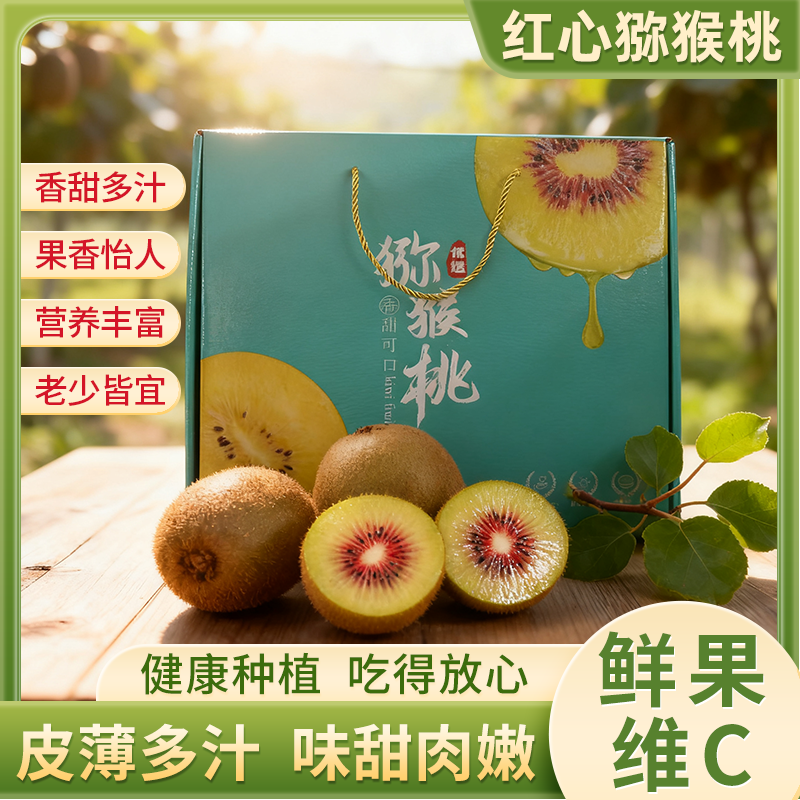 牛选号 蒲江红心猕猴桃手提礼盒内装90G-110G红心猕猴桃24个