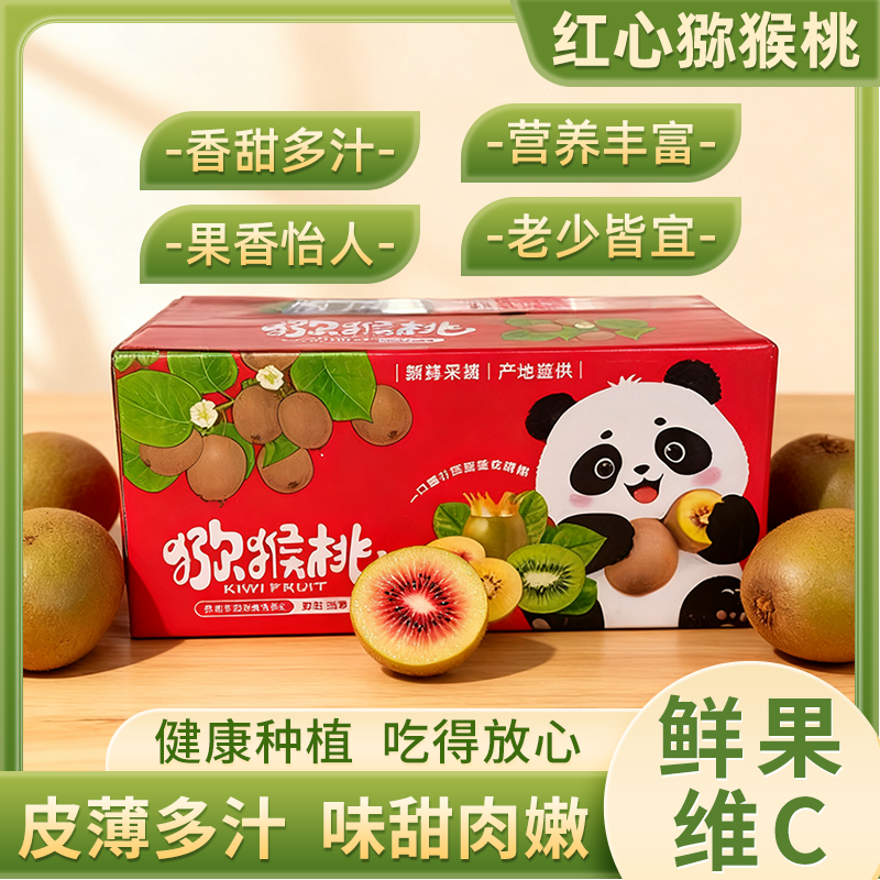牛选号 蒲江红心猕猴桃双层彩盒内装70G-90G红心猕猴桃30个