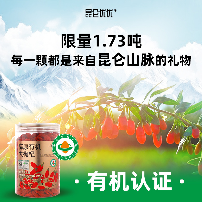 牛选号 昆仑优优高原有机大枸杞免洗柴达木红枸杞干吃泡茶泡酒特优级养生