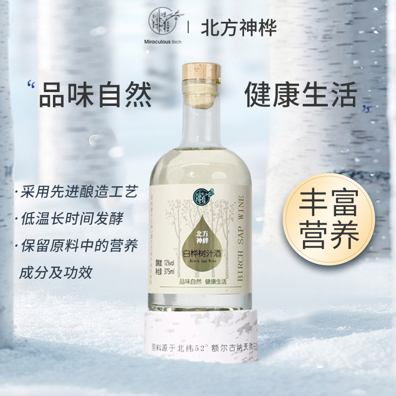 牛选号 北方神桦白桦树汁酒375ml/瓶低度微醺蒸馏发酵晚安酒