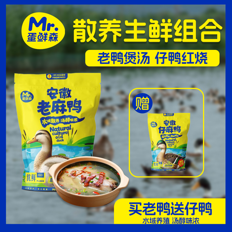 牛选号 【两只组合装】蛋鲜森 巢湖老麻鸭+仔麻鸭1只