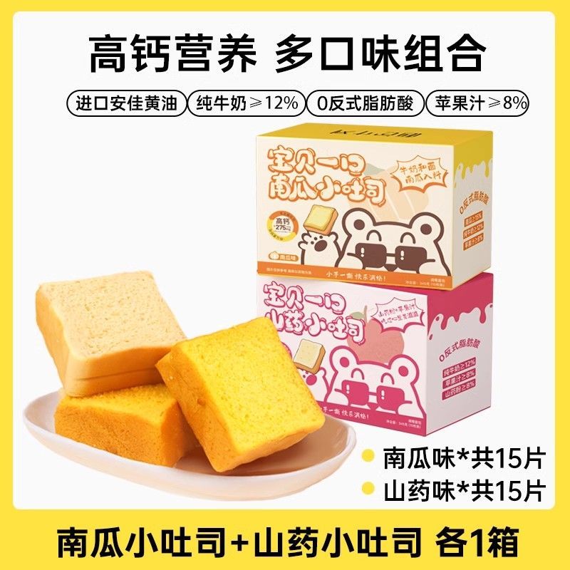 牛选号 面包计划宝贝一口迷你小吐司(山药味/南瓜味)2箱装