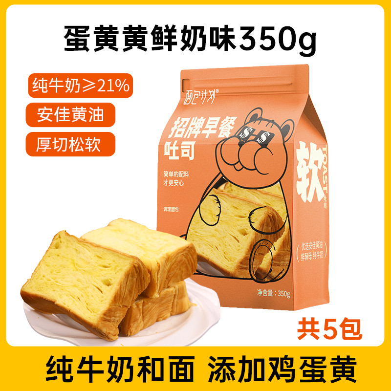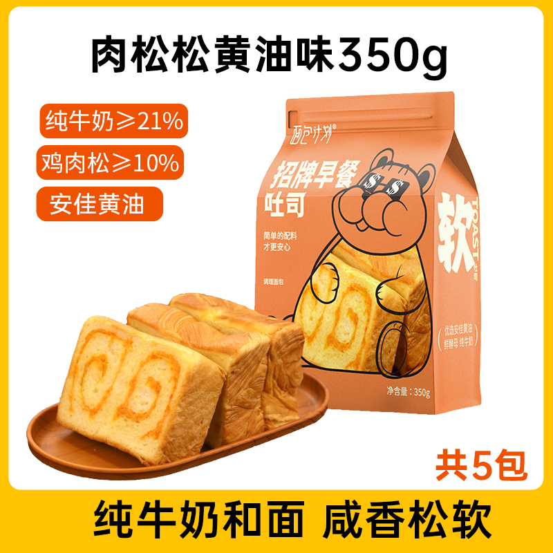 牛选号 面包计划肉松松黄油吐司/蛋黄黄鲜奶吐司350g/袋装