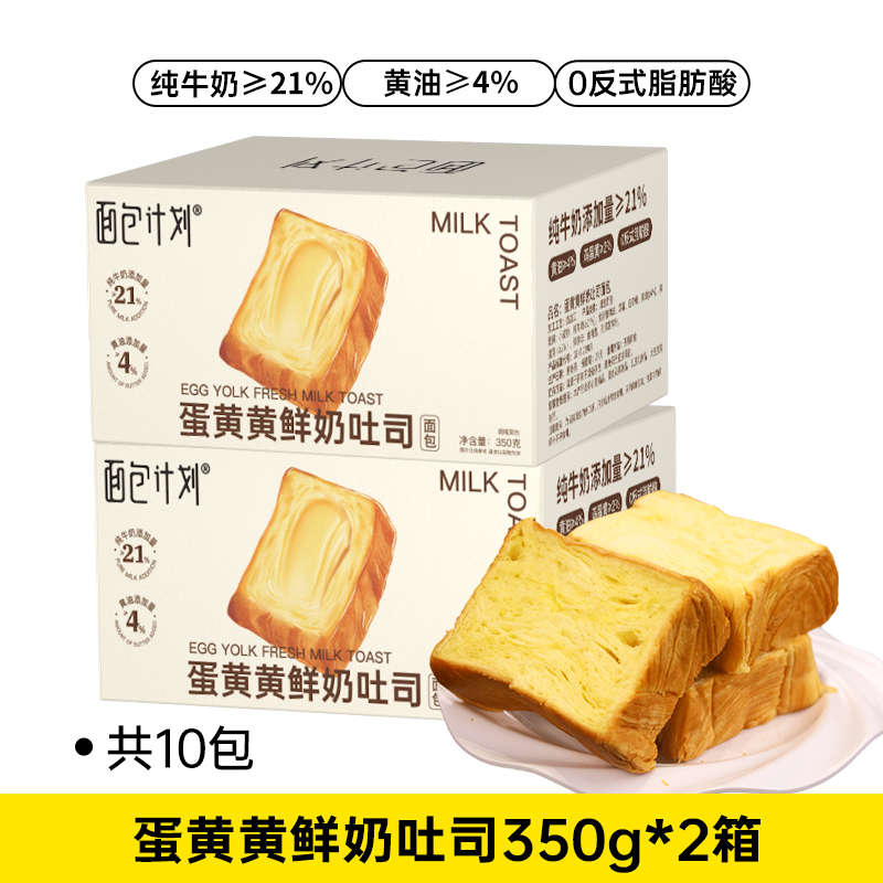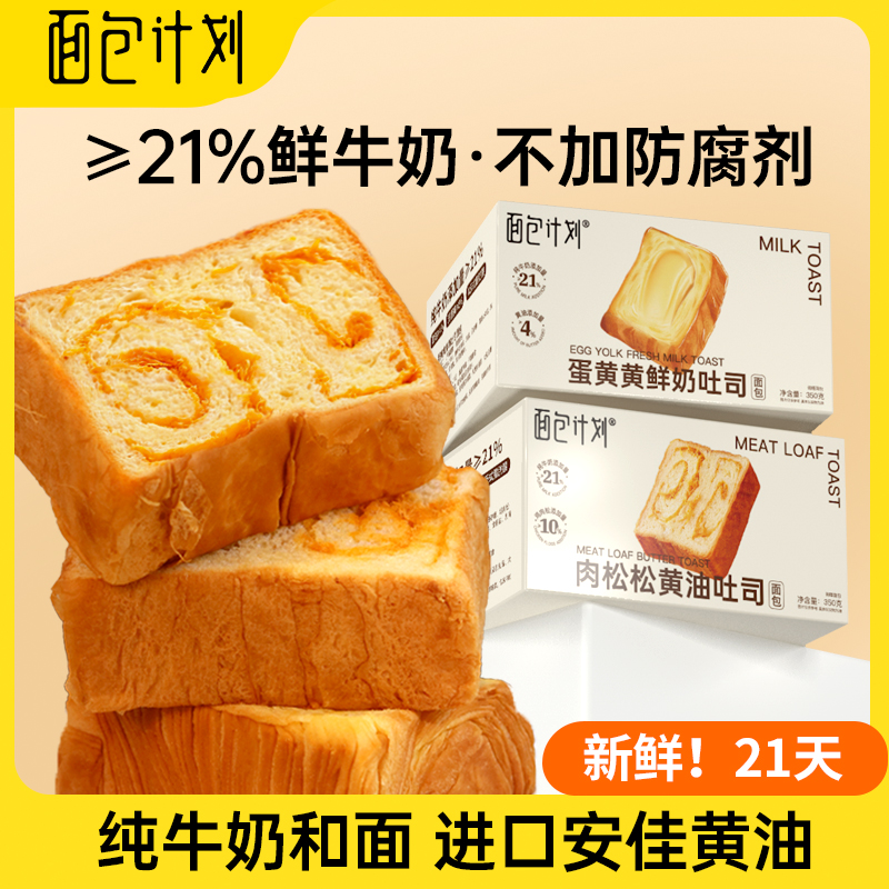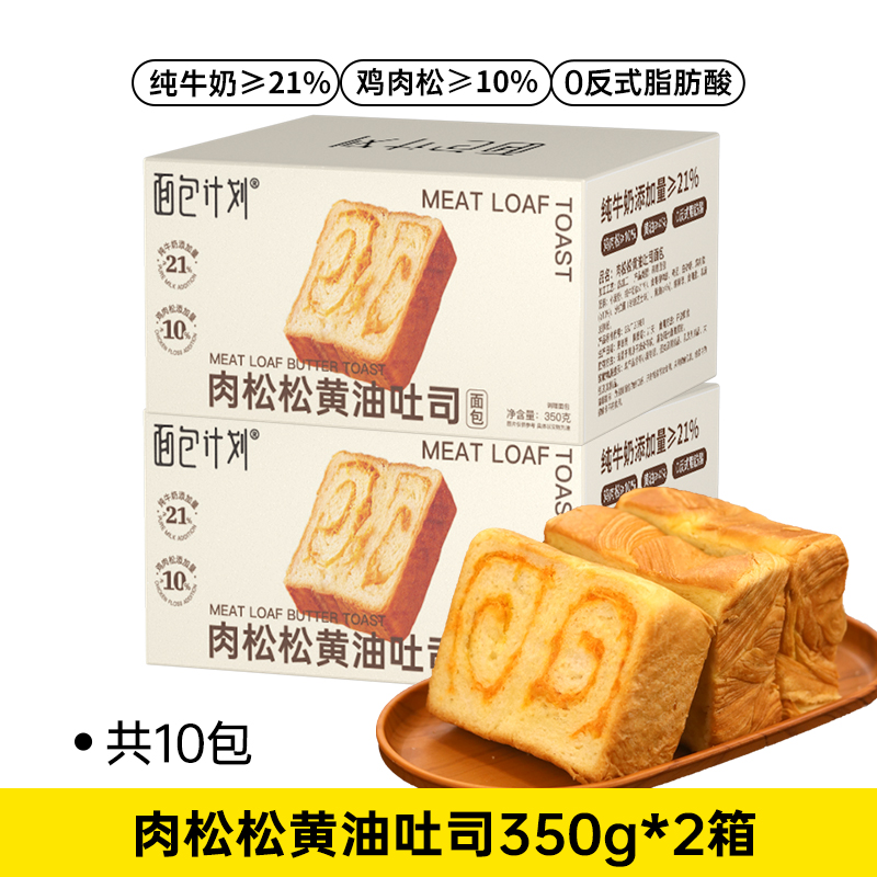 牛选号 面包计划肉松松黄油吐司/蛋黄黄鲜奶吐司2箱装