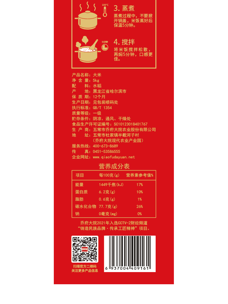 牛选号 乔府大院长粒香米(红金色)5kg/袋