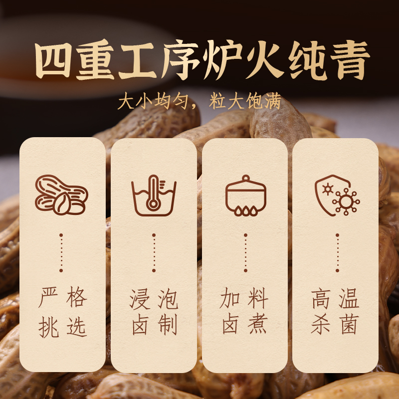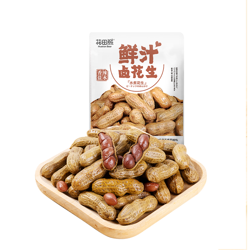 牛选号 花田熊鲜汁水煮带壳五香味卤花生208g*10包