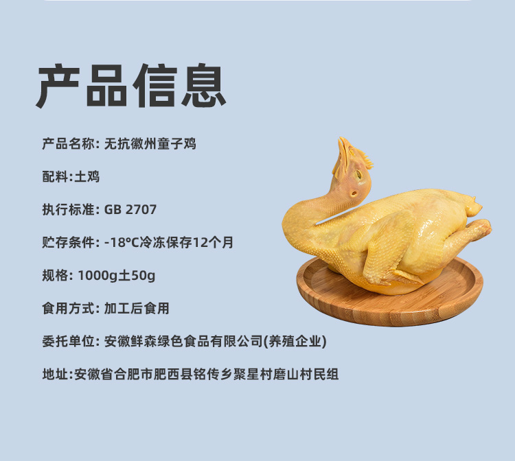 牛选号 蛋鲜森 徽州童子鸡 1000g±50g/只 1只装