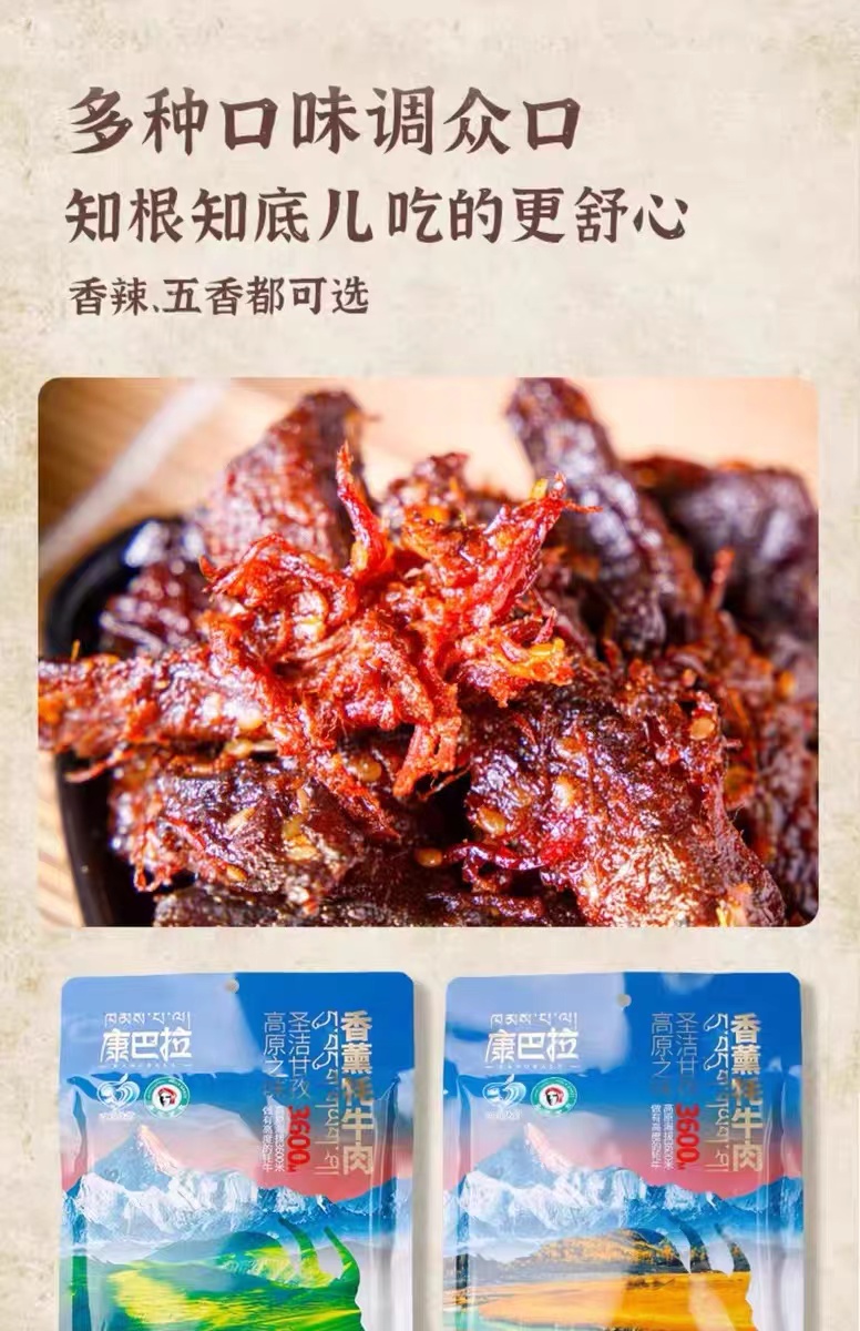 甘孜康巴拉香薰牦牛肉干四川高原特产休闲家庭零食98g*2