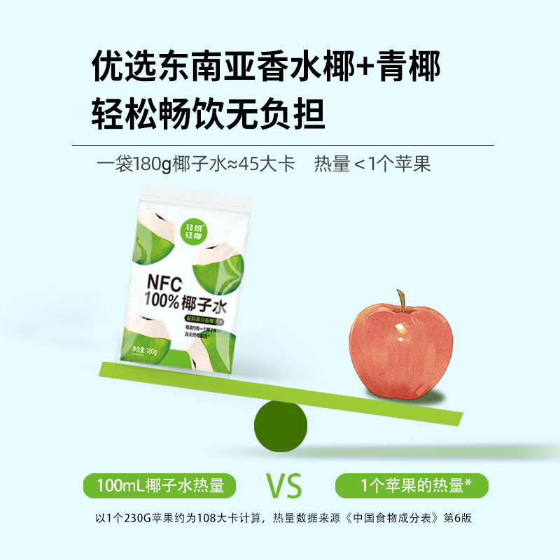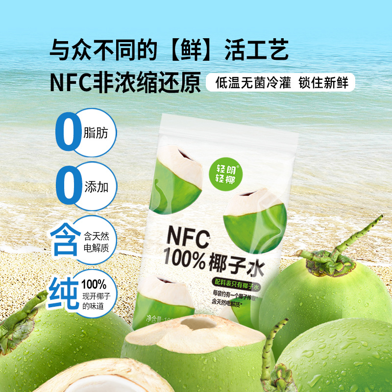 牛选号 轻朗NFC100%椰子水180g*10袋/箱