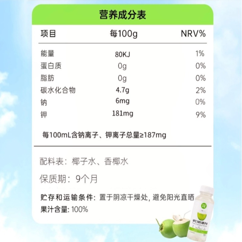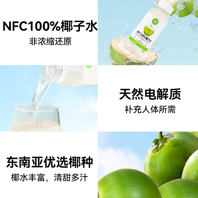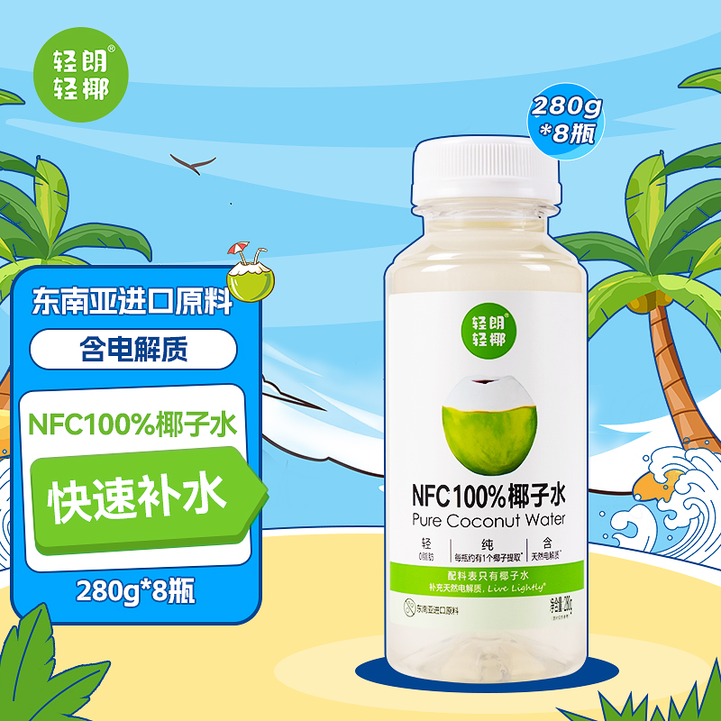 牛选号 轻朗NFC100%椰子水280g280g*8瓶/箱