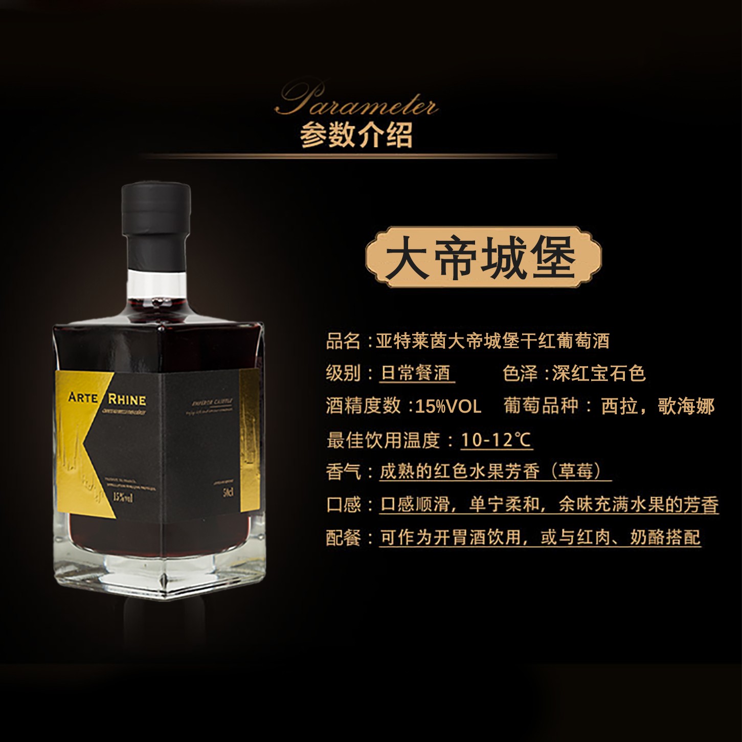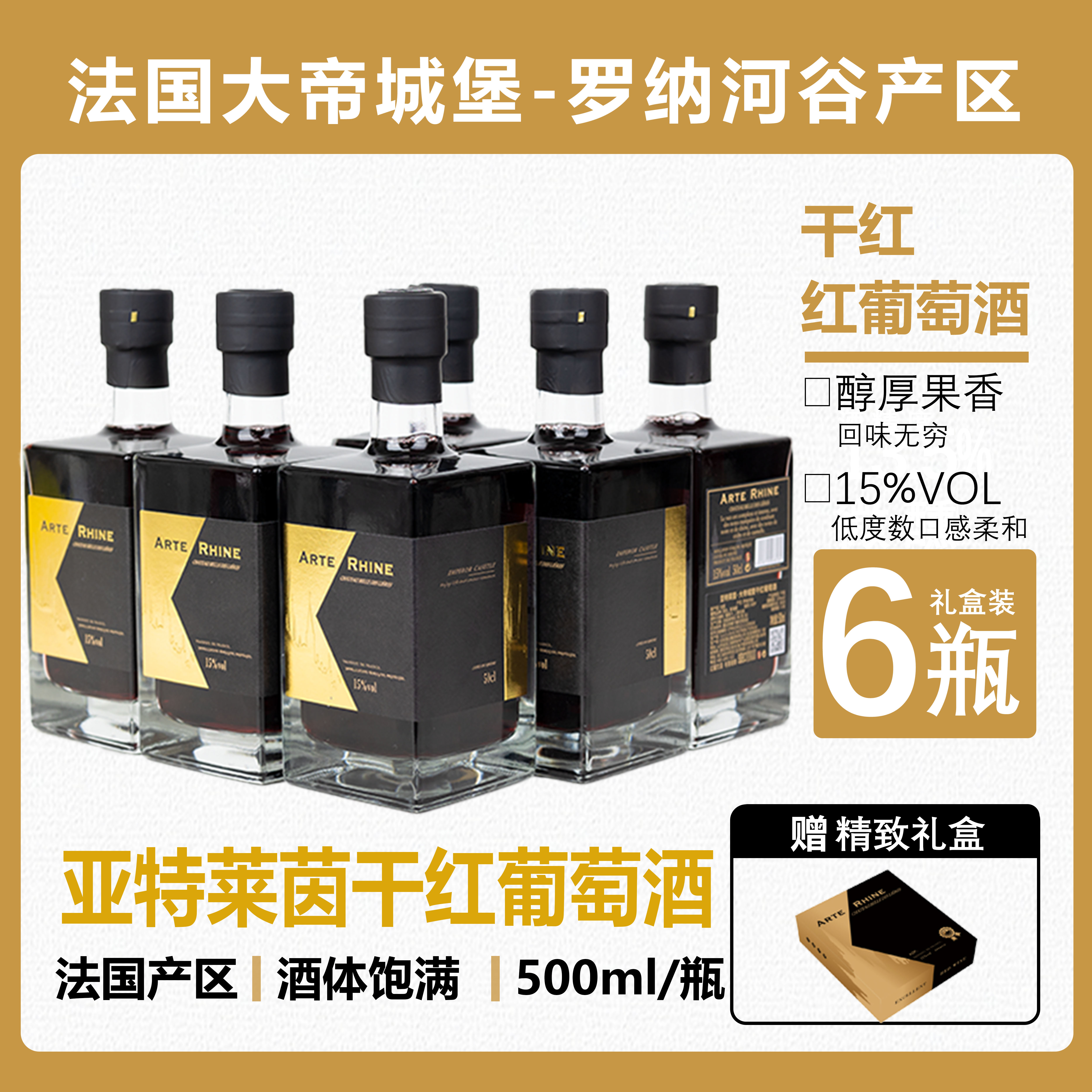 牛选号 亚特莱茵·大帝城堡干红红葡萄酒500ml*6瓶