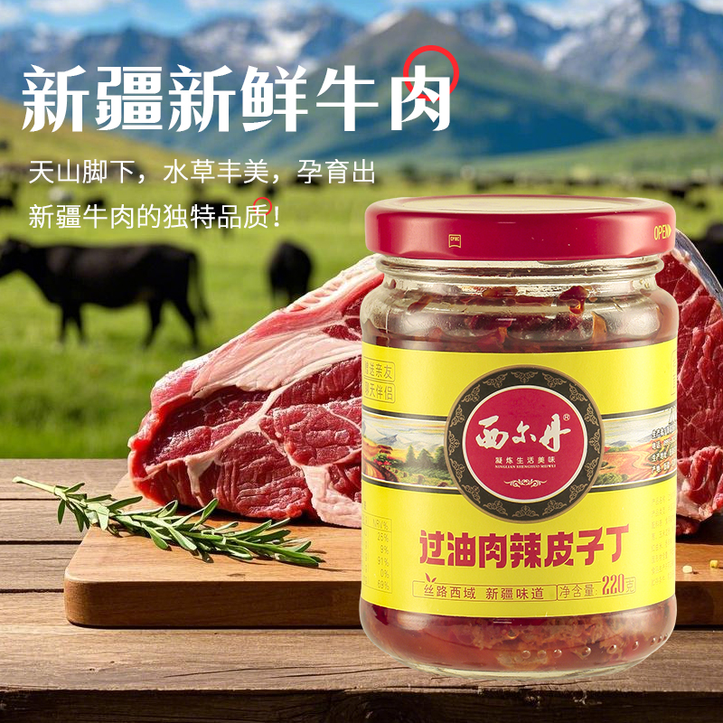 牛选号 西尔丹过油肉辣皮子丁220g*3瓶