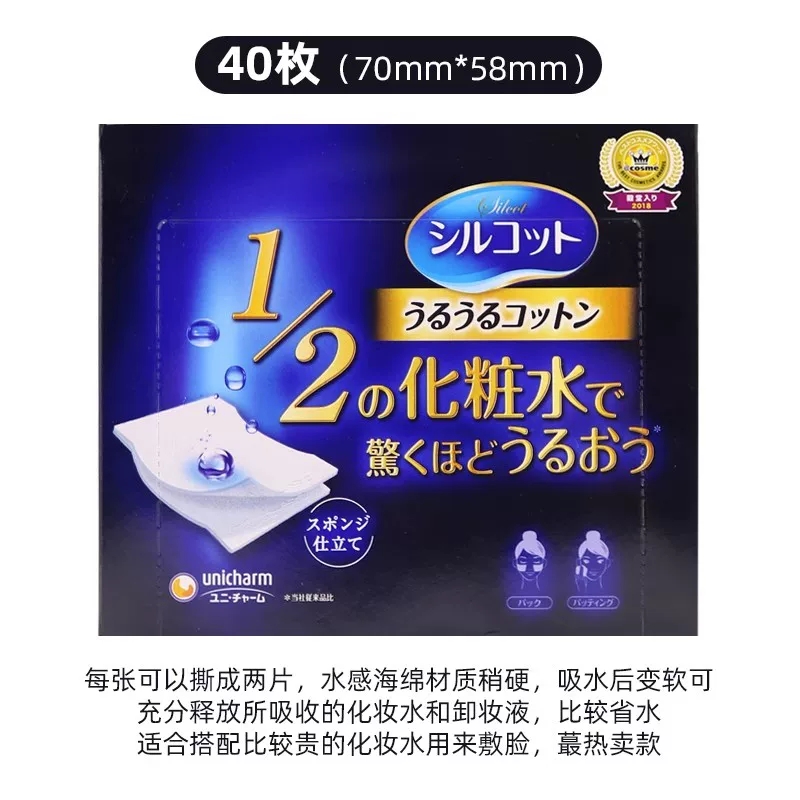 日本UNICHARM/尤妮佳化妆棉薄1/2省水湿敷女专用脸部