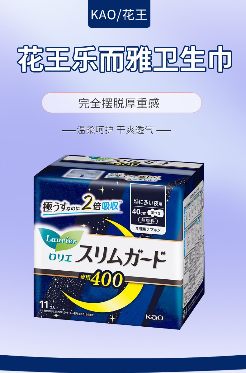 进口花王乐而雅零触感S系列40cm11片*4包卫生巾夜用组合