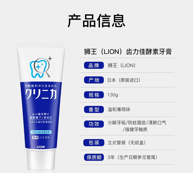 狮王酵素美白牙膏