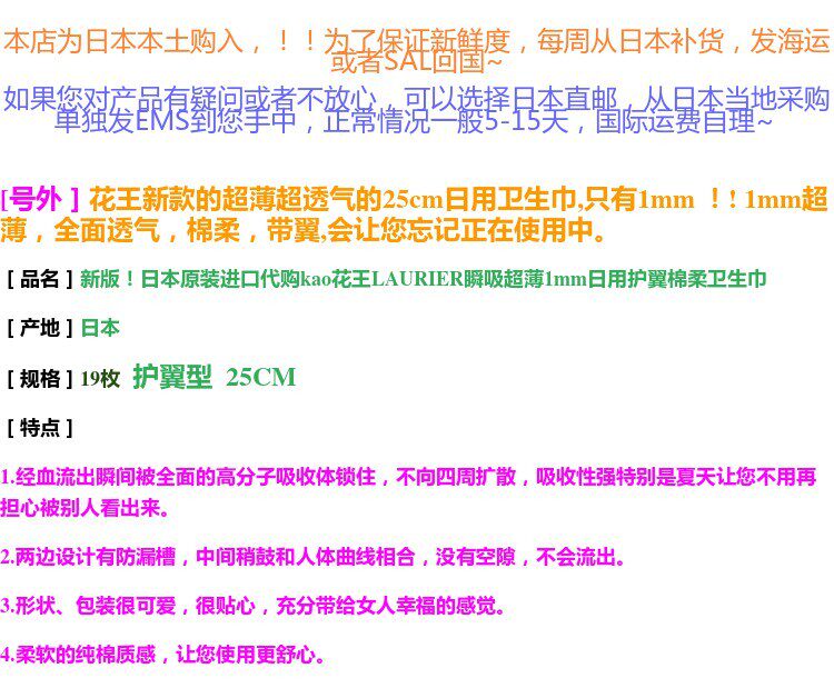 花王乐而雅卫生巾零触感超薄柔软日用25cm