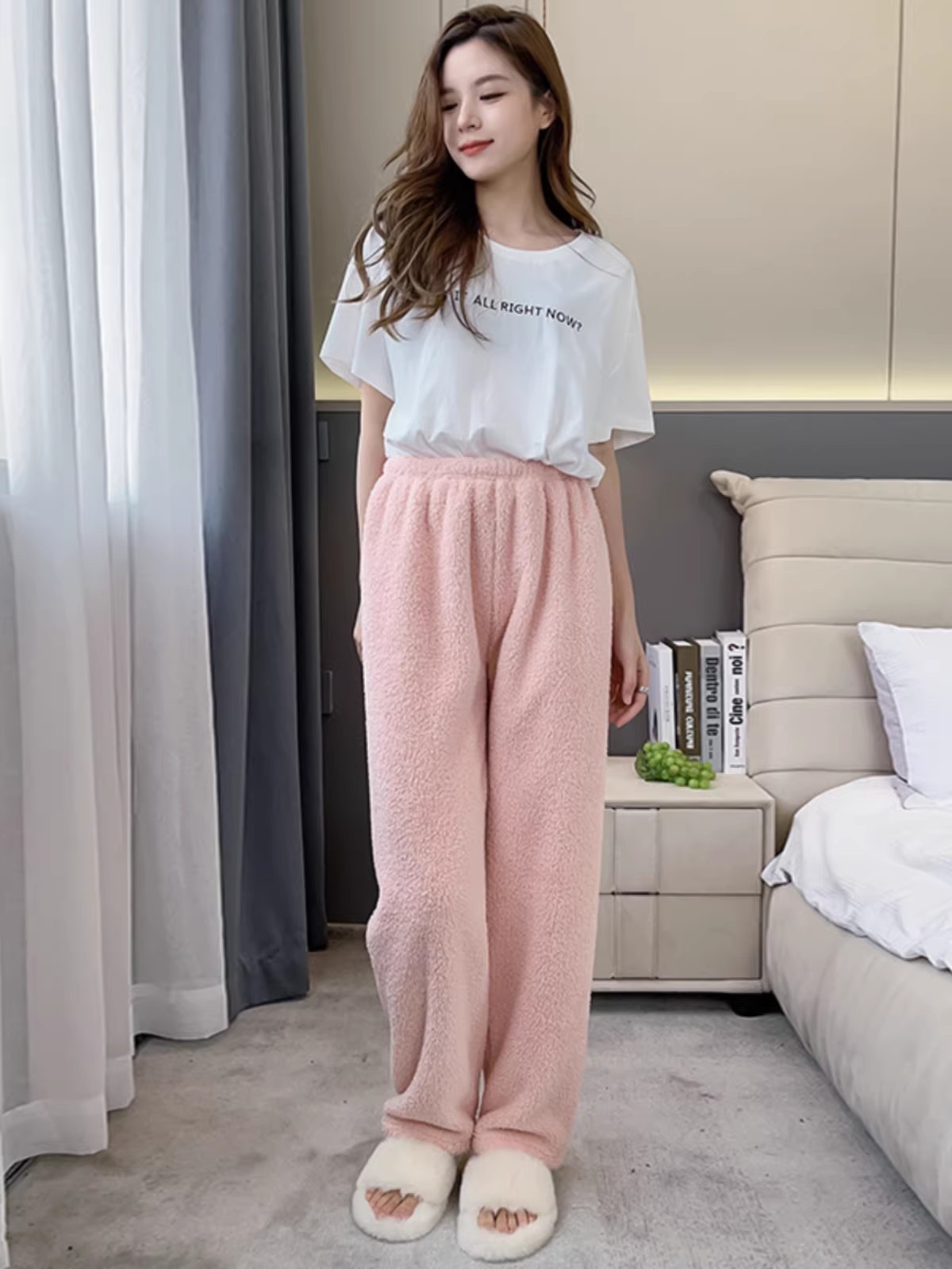 粉色米粒绒睡裤