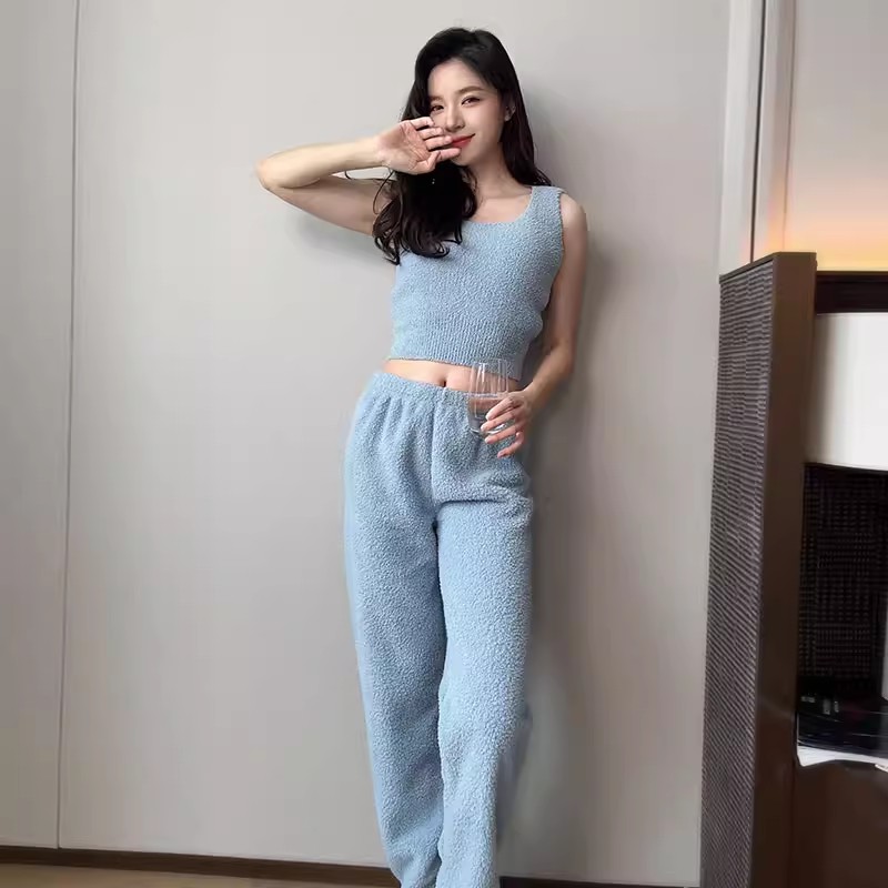 半边绒背心打底吊带睡衣女款秋冬双层防凸点贴身家居服