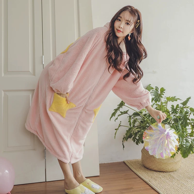 星星睡袍女冬珊瑚绒睡衣