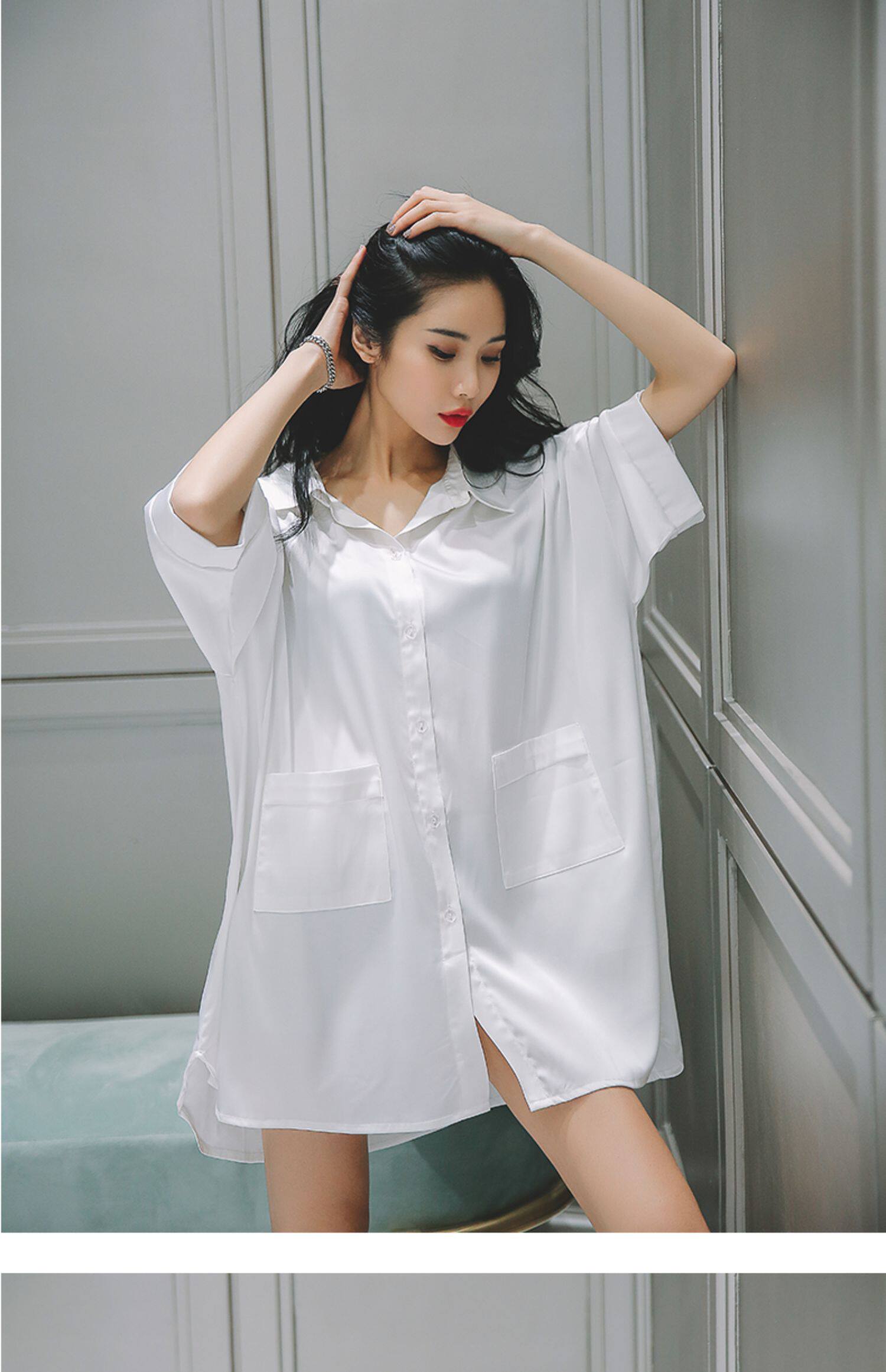 白色简约中长款衬衫