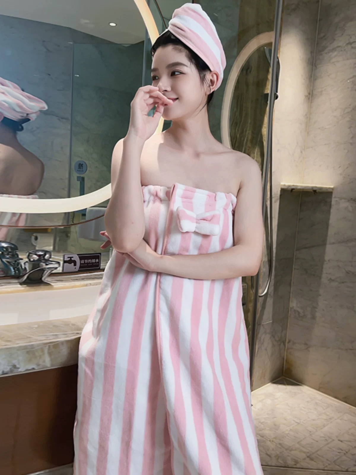 抹胸浴裙送干发帽