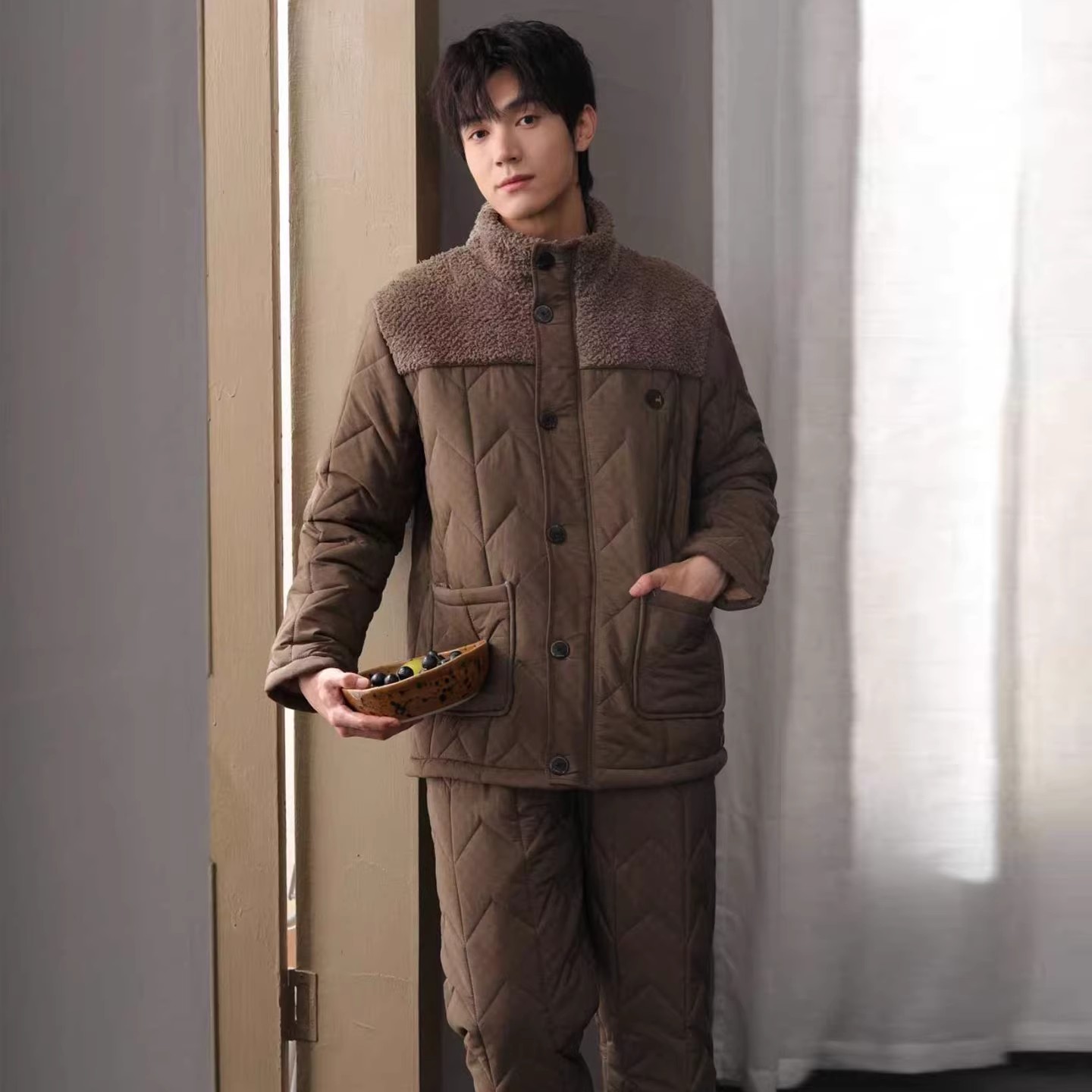 • 9703咖色男士夹棉套装