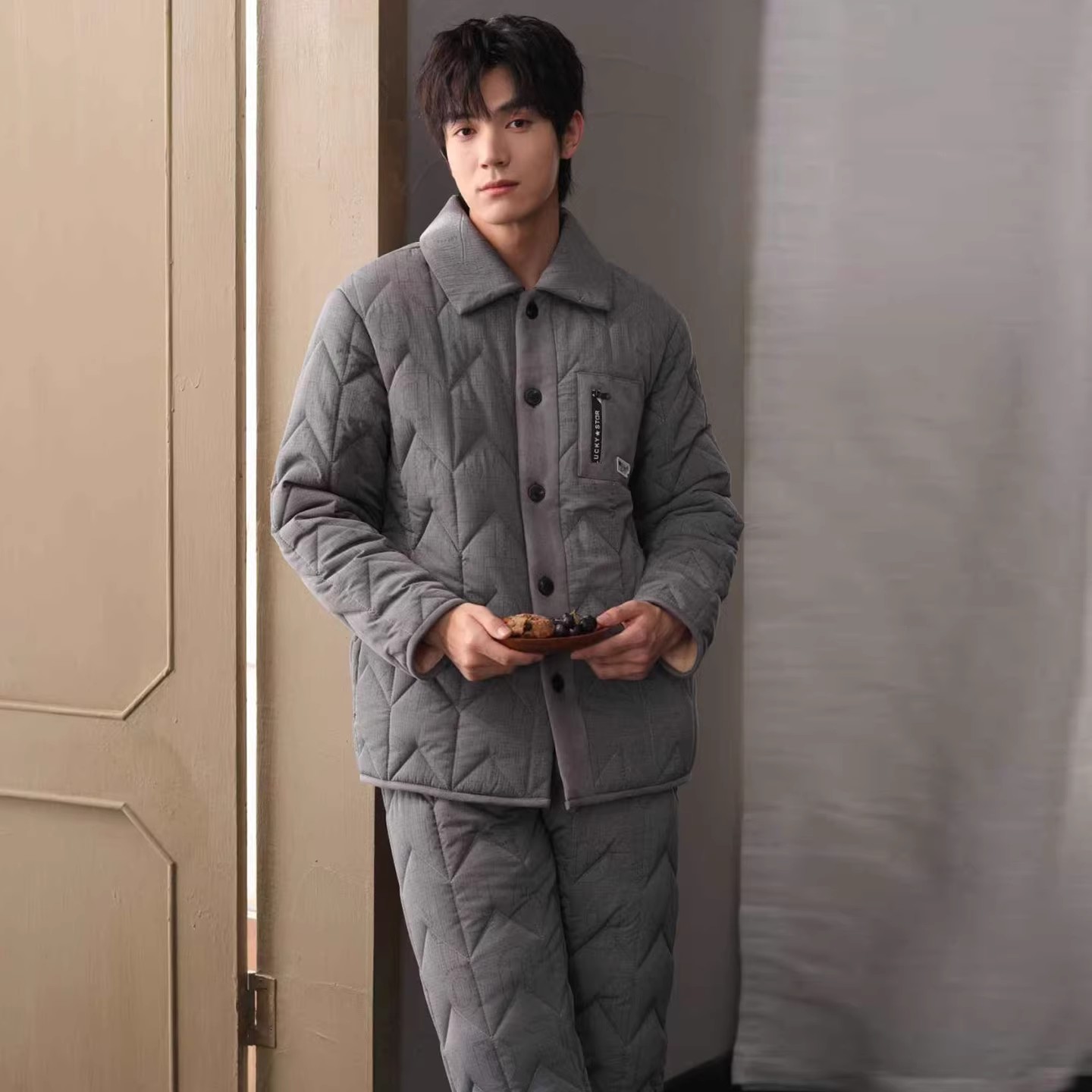• 9702灰色男士夹棉套装