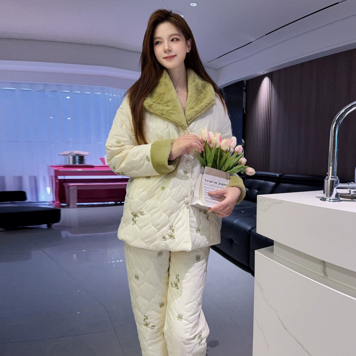 三层夹棉保暖加绒大翻领毛绒可外穿家居服