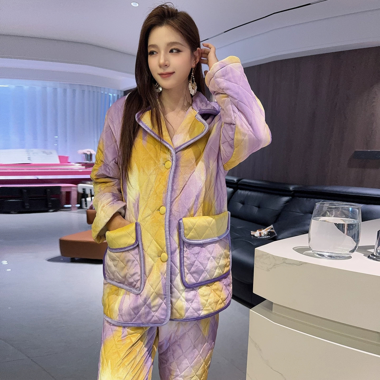 加厚加绒可外穿家居服长袖长裤两件套夹棉