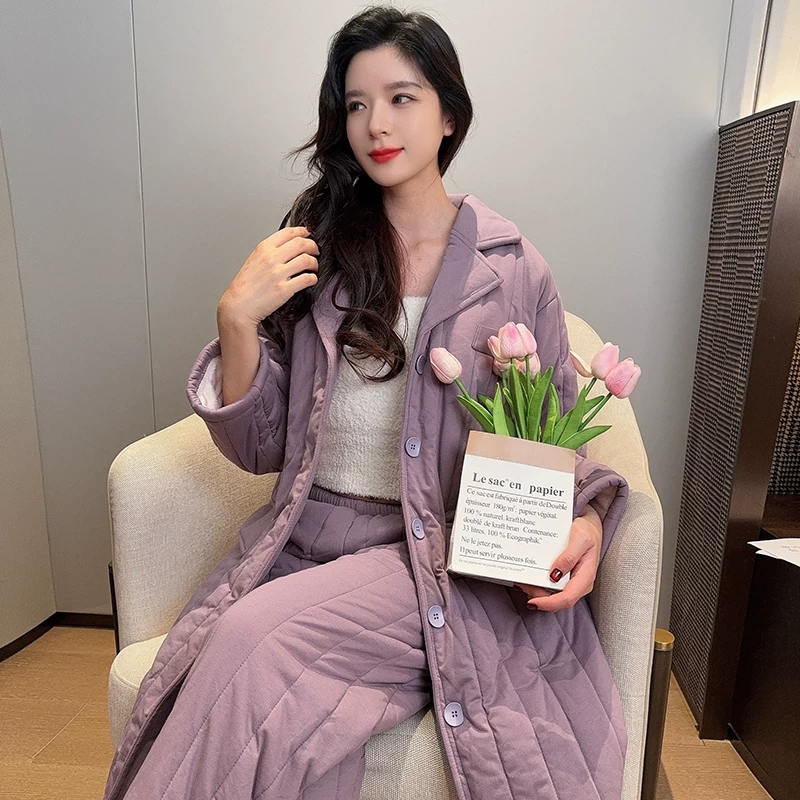 夹棉袄加绒加厚长款棉质睡袍长裤