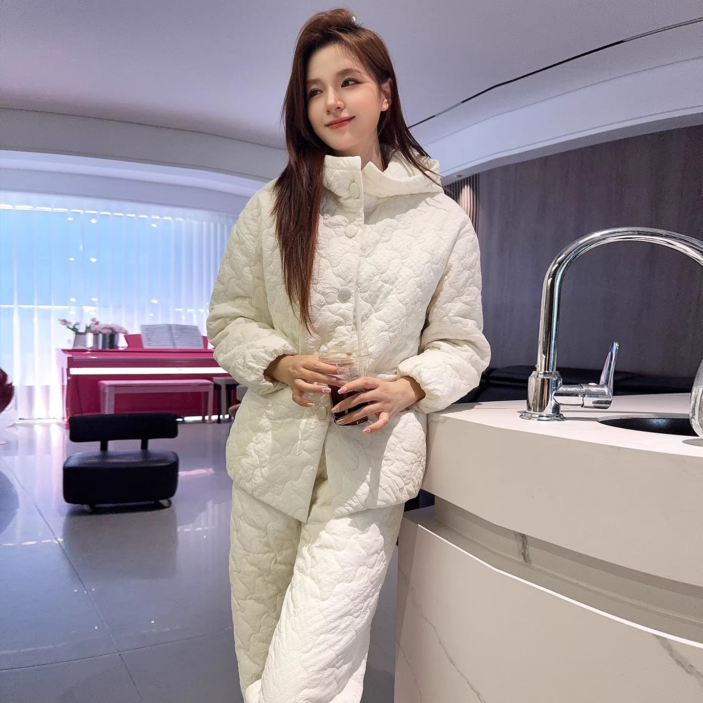 冬季新款加厚冬天时尚型连帽可外穿保暖家居服