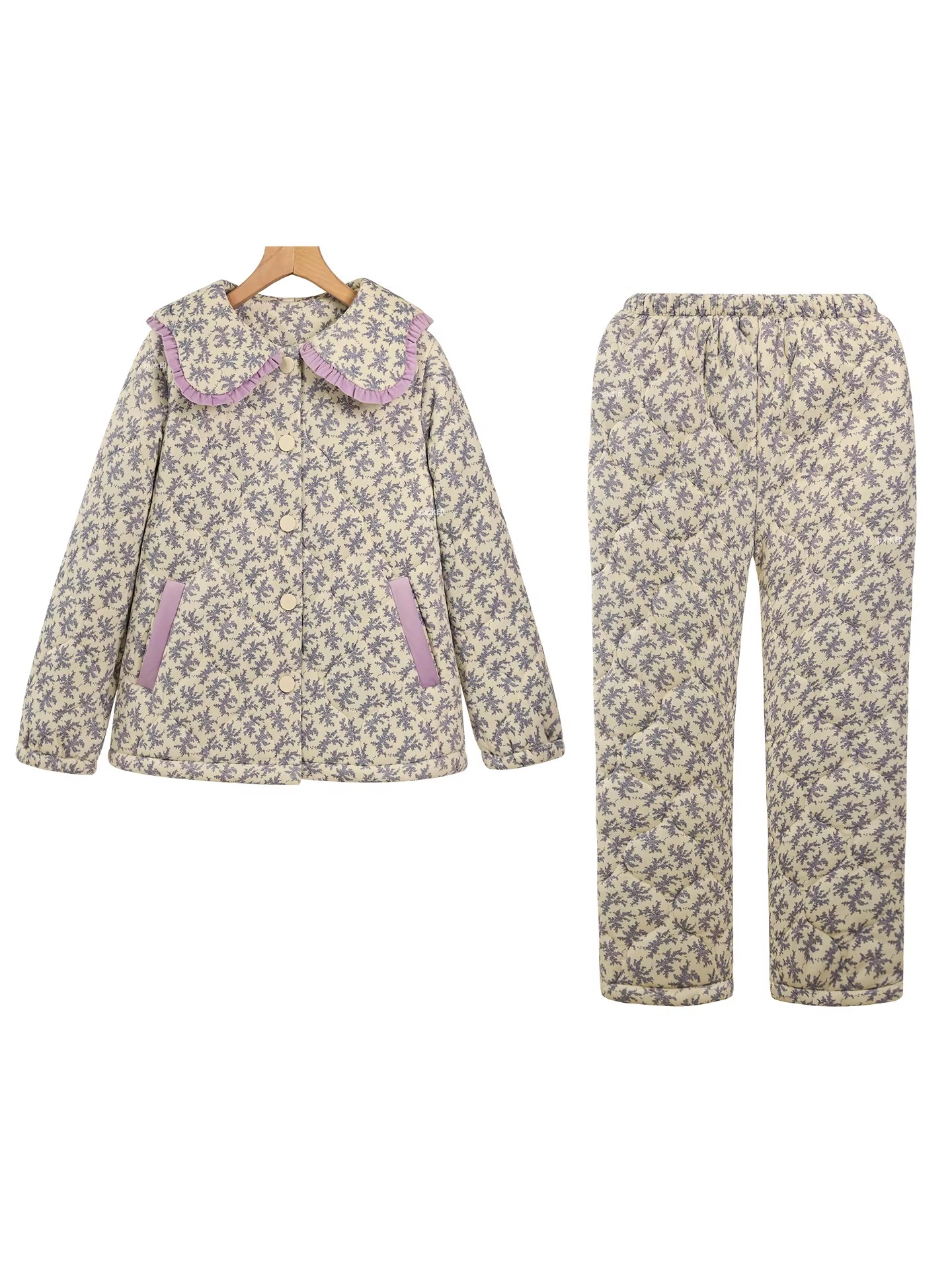 珊瑚绒夹棉睡衣女减龄三层保暖