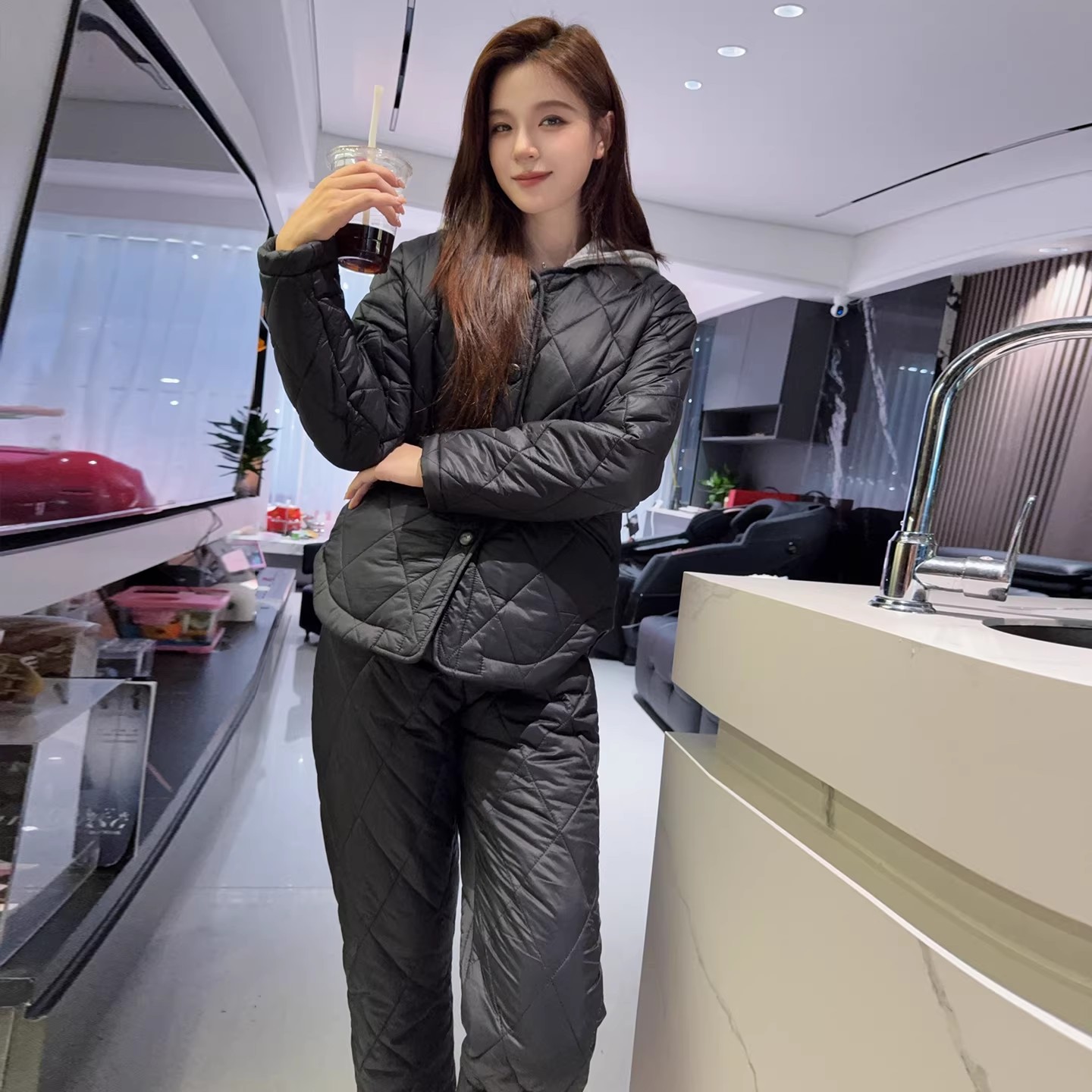 • 33905夹棉黑色套装