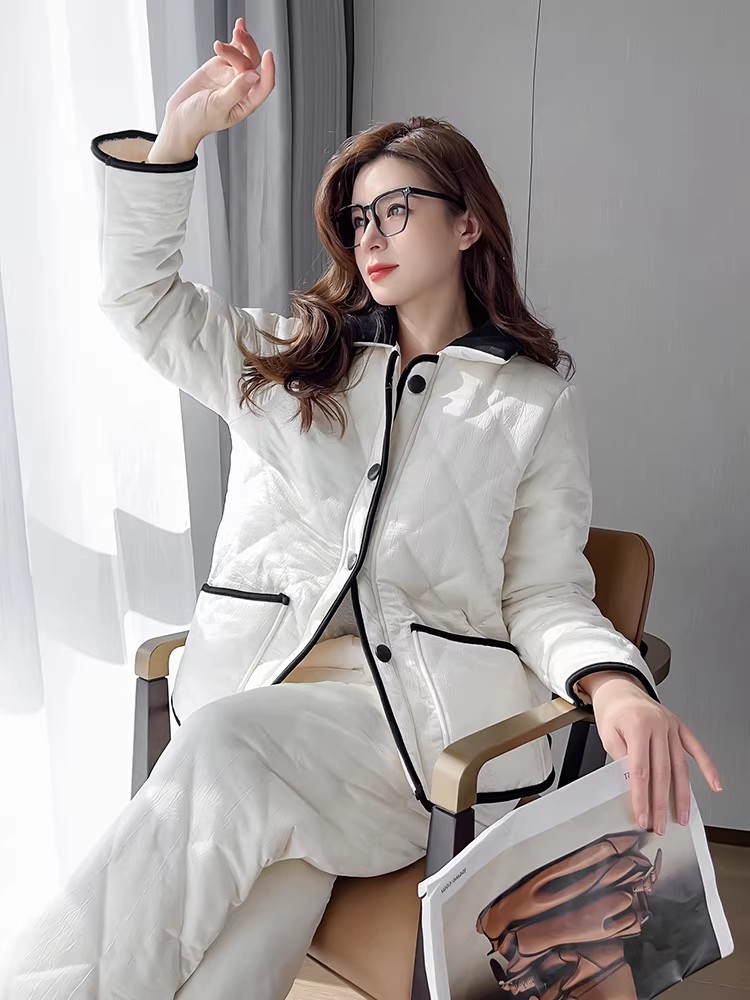 翻领小香风外穿家居服夹棉