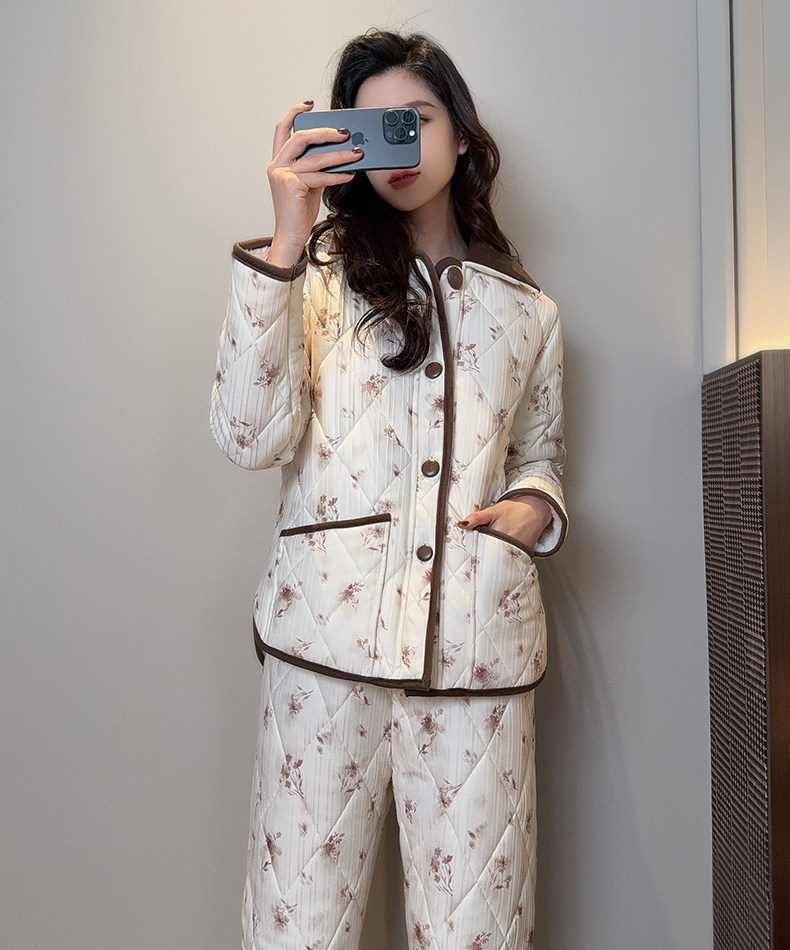 新款居家服夹棉加绒睡衣