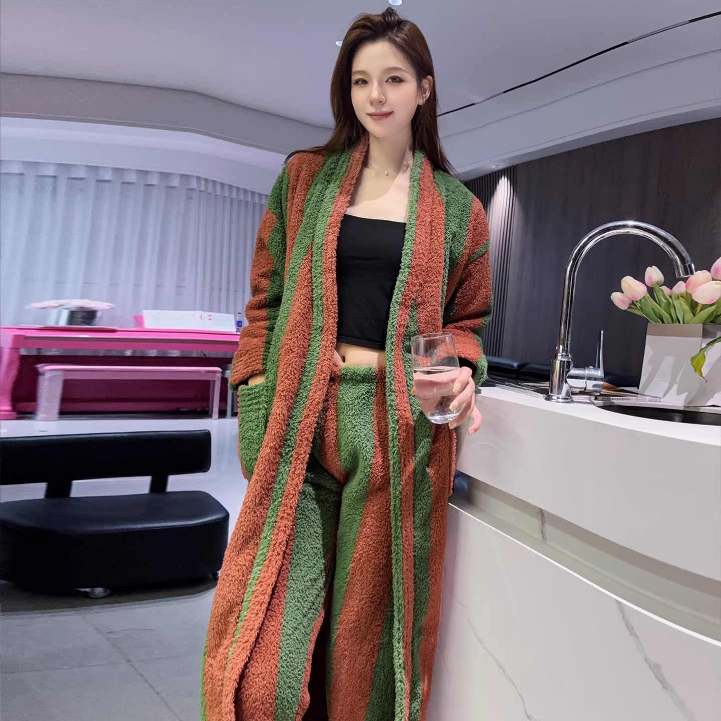 珊瑚绒情侣睡袍裤子套装