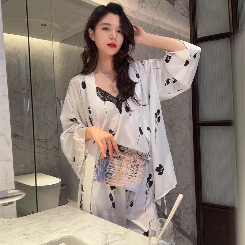 吊带睡衣女夏季带胸垫家居服三件套
