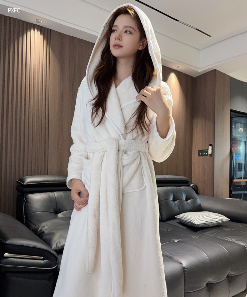 • 23308企鹅绒加绒加厚白色连帽睡袍