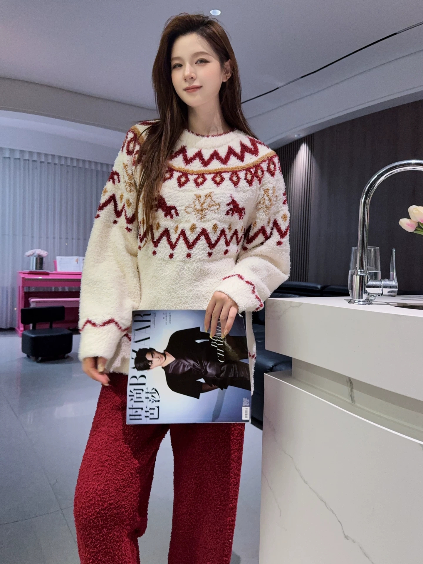 牛选  > 服饰鞋包  > 其他  > 复古花纹半边绒套装