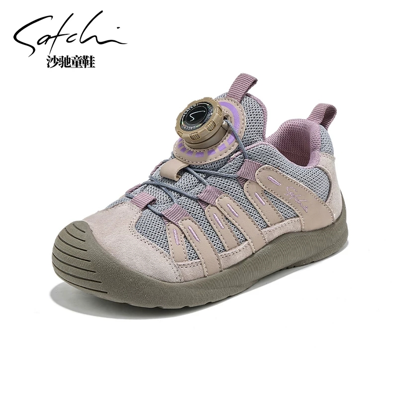 沙驰童鞋儿童运动鞋防滑女童纽扣登山鞋