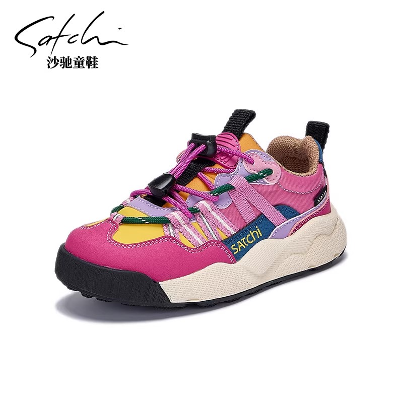 沙驰童鞋儿童男童软底防滑女童速扣鞋带跑步鞋运