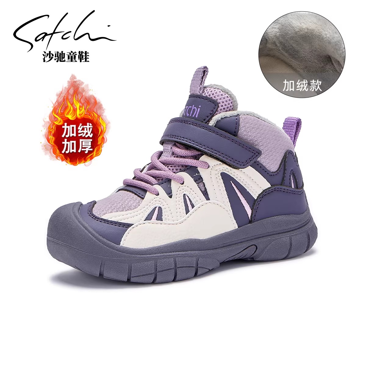 沙驰童鞋儿童棉鞋冬季加绒二棉高帮女童运动鞋保暖男童