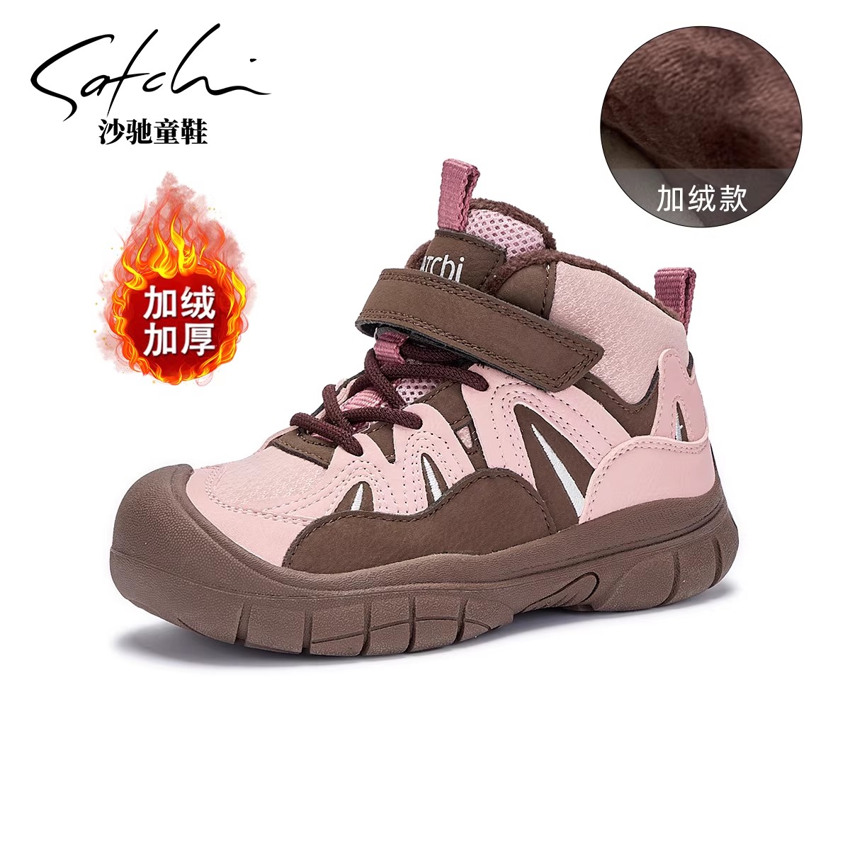 沙驰童鞋儿童棉鞋冬季加绒二棉高帮女童运动鞋保暖男童
