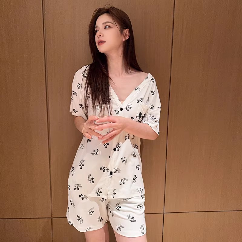 V领短裤薄款家居服套装