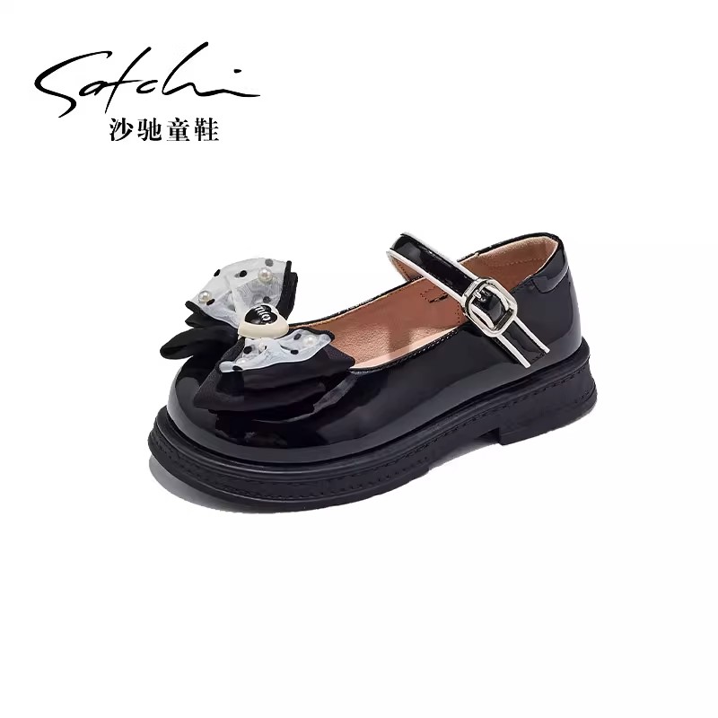 沙驰童鞋女童公主皮鞋蝴蝶结单鞋