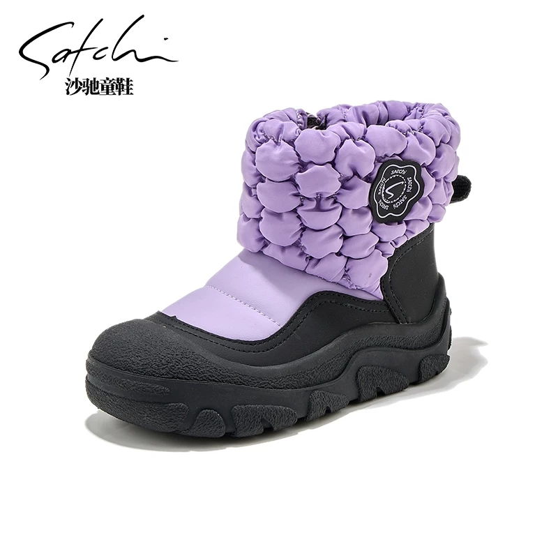 沙驰童鞋女童雪地靴防滑大棉鞋女孩