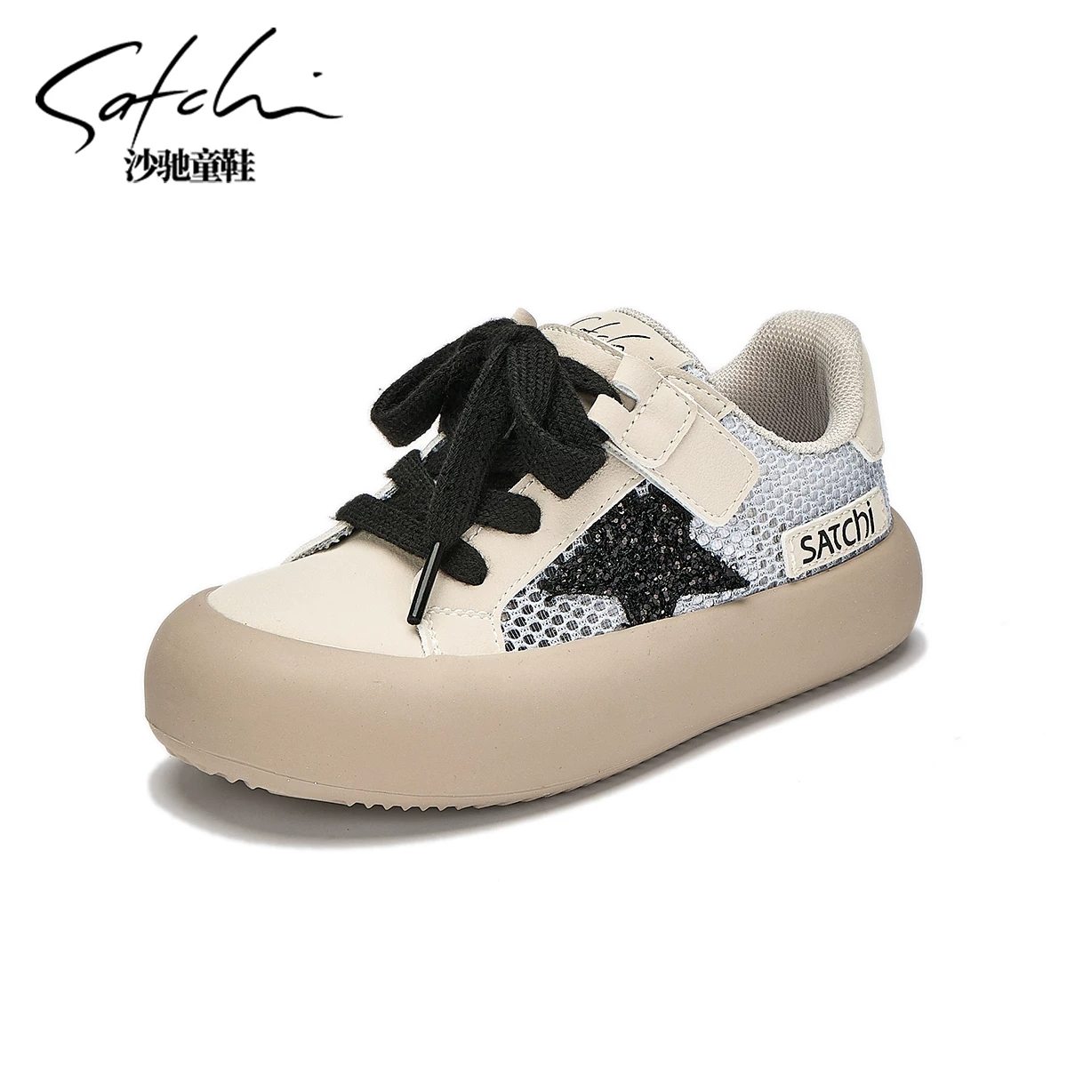 沙驰童鞋女童板鞋2025春夏新款透气网面星星鞋儿童亲子休闲运
