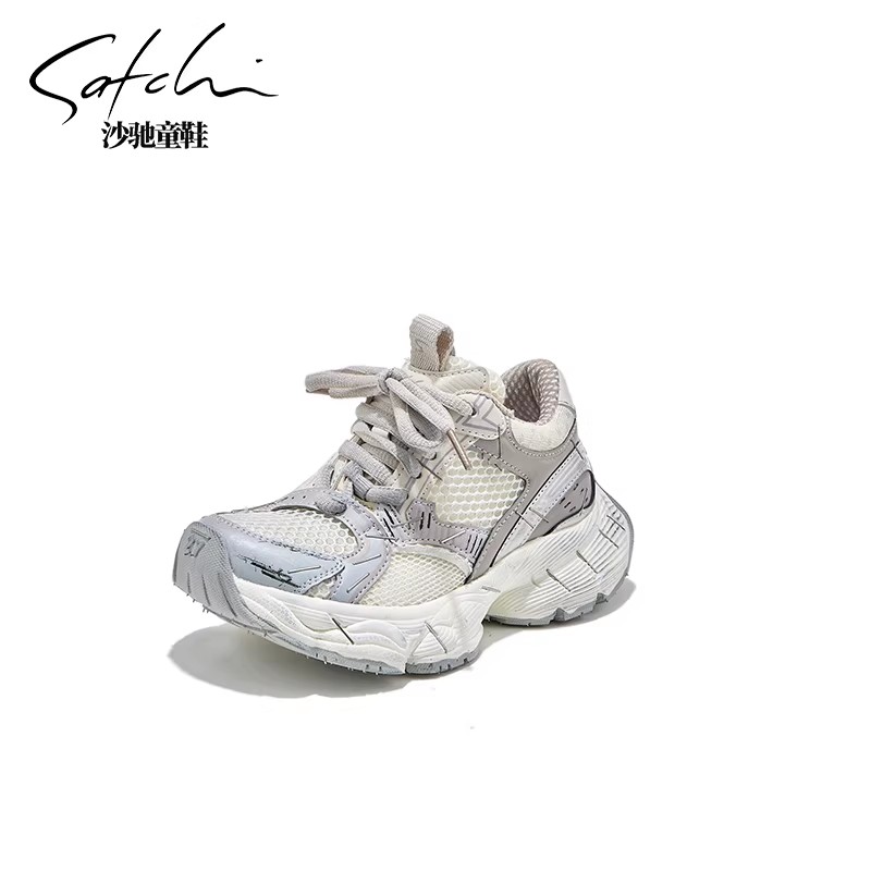 沙驰童鞋儿童运动鞋2025春秋款女童跑步鞋软底网面透气男童老
