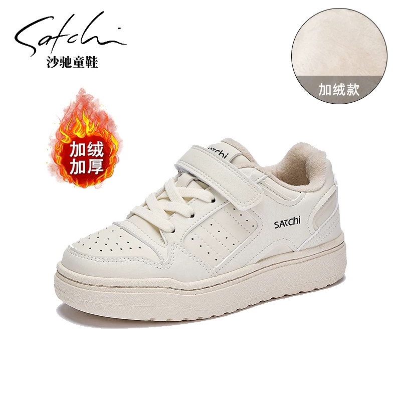 沙驰童鞋女童板鞋2025冬季新款中大童男童保暖加绒防滑百搭滑